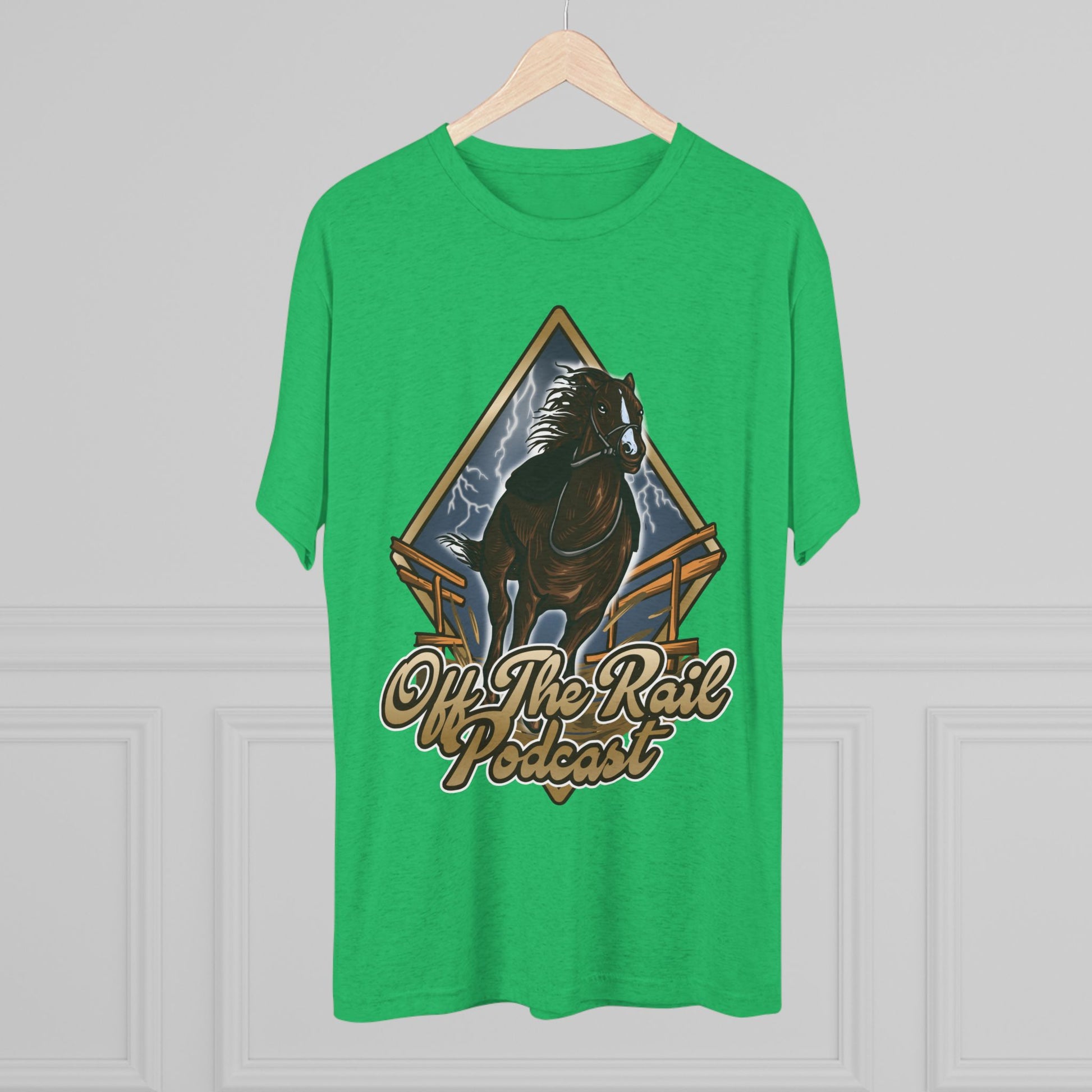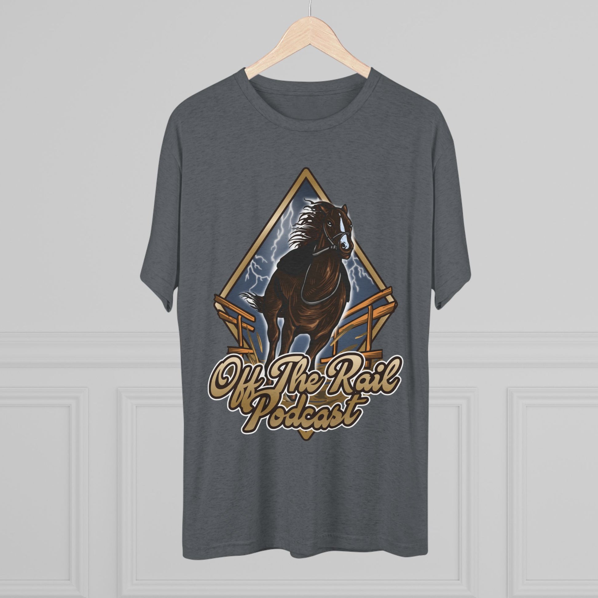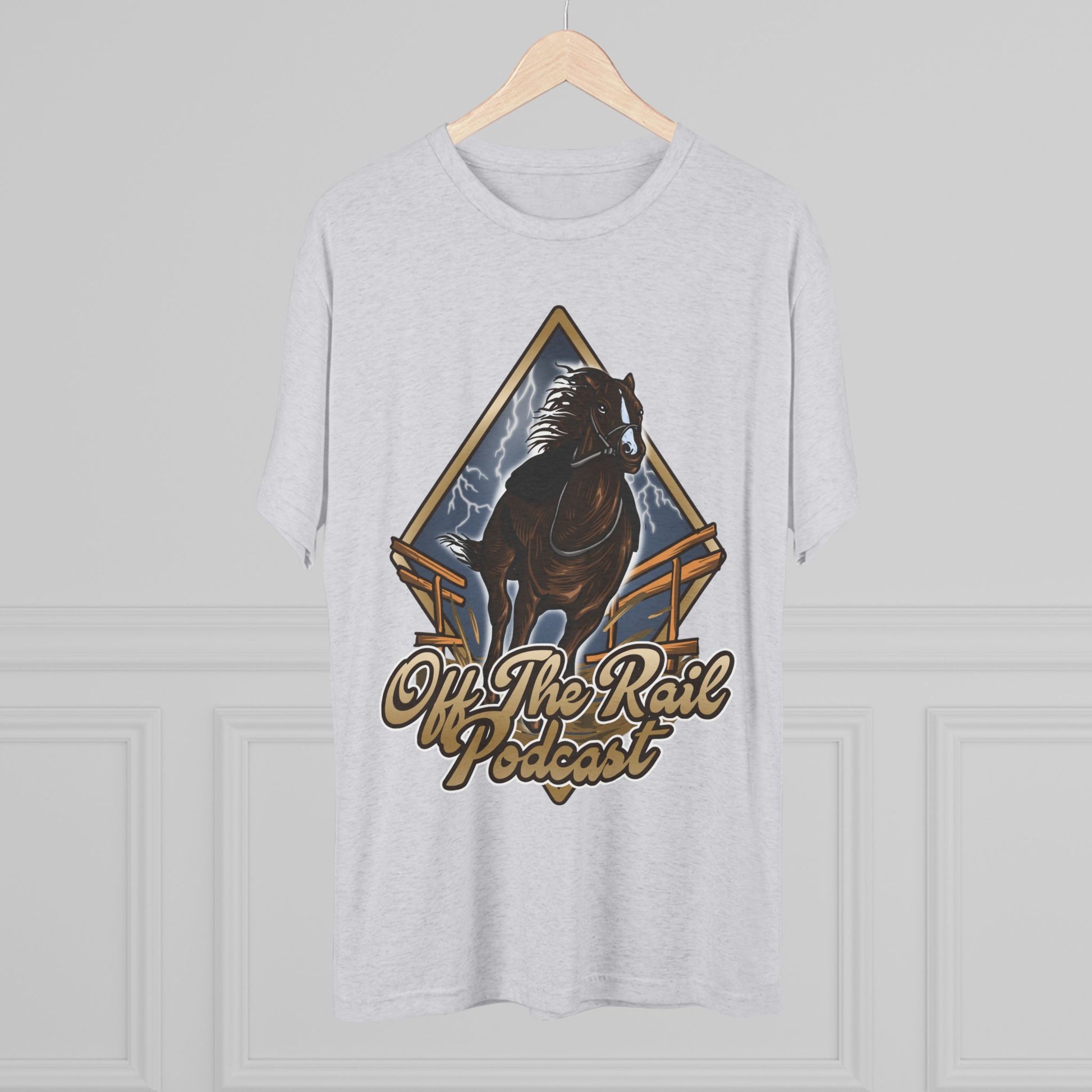 Off The Rail Podcast Unisex Tri-Blend Tee, Horse Racing, Podcast Merchandise, Equine Apparel, Stylish Crew Neck Shirt