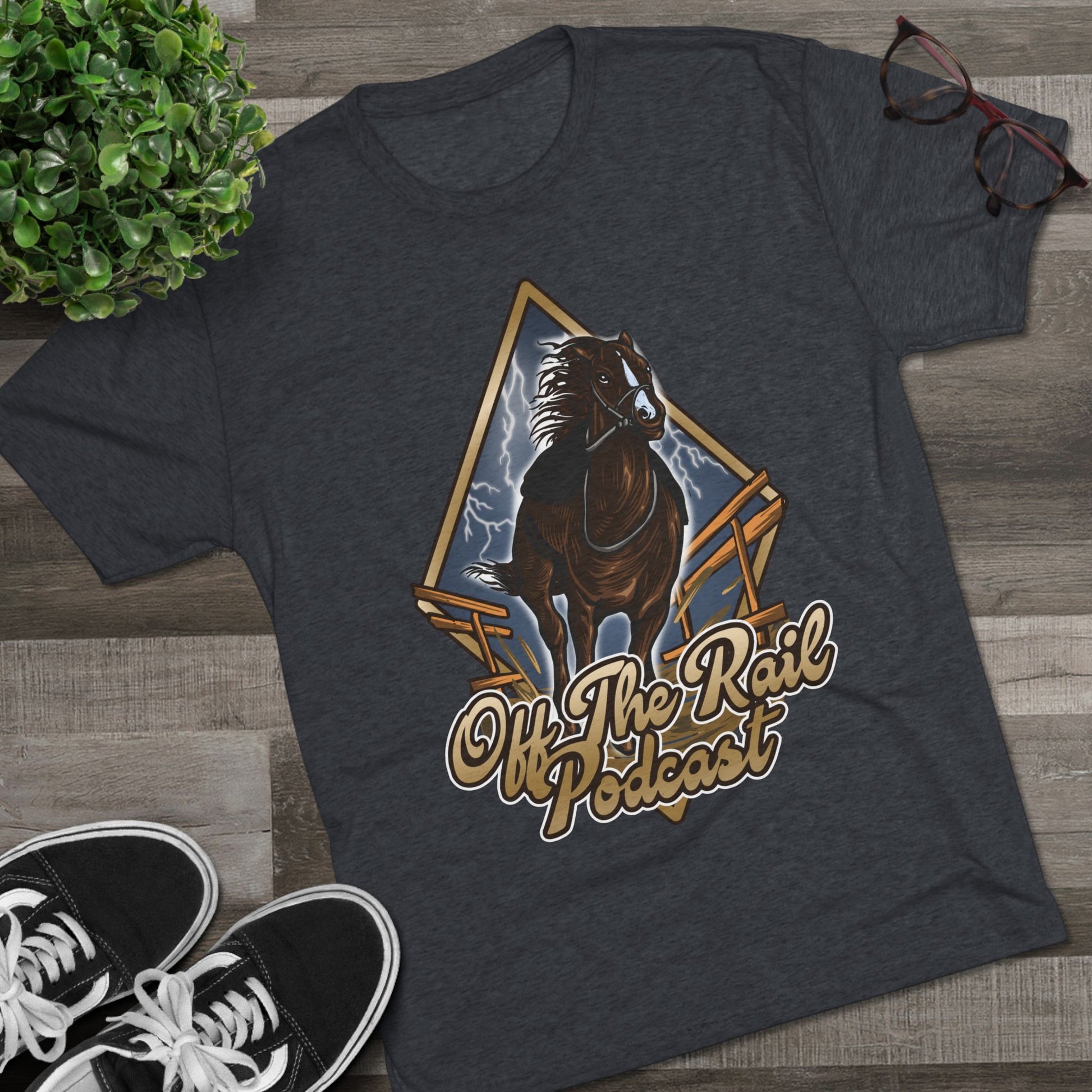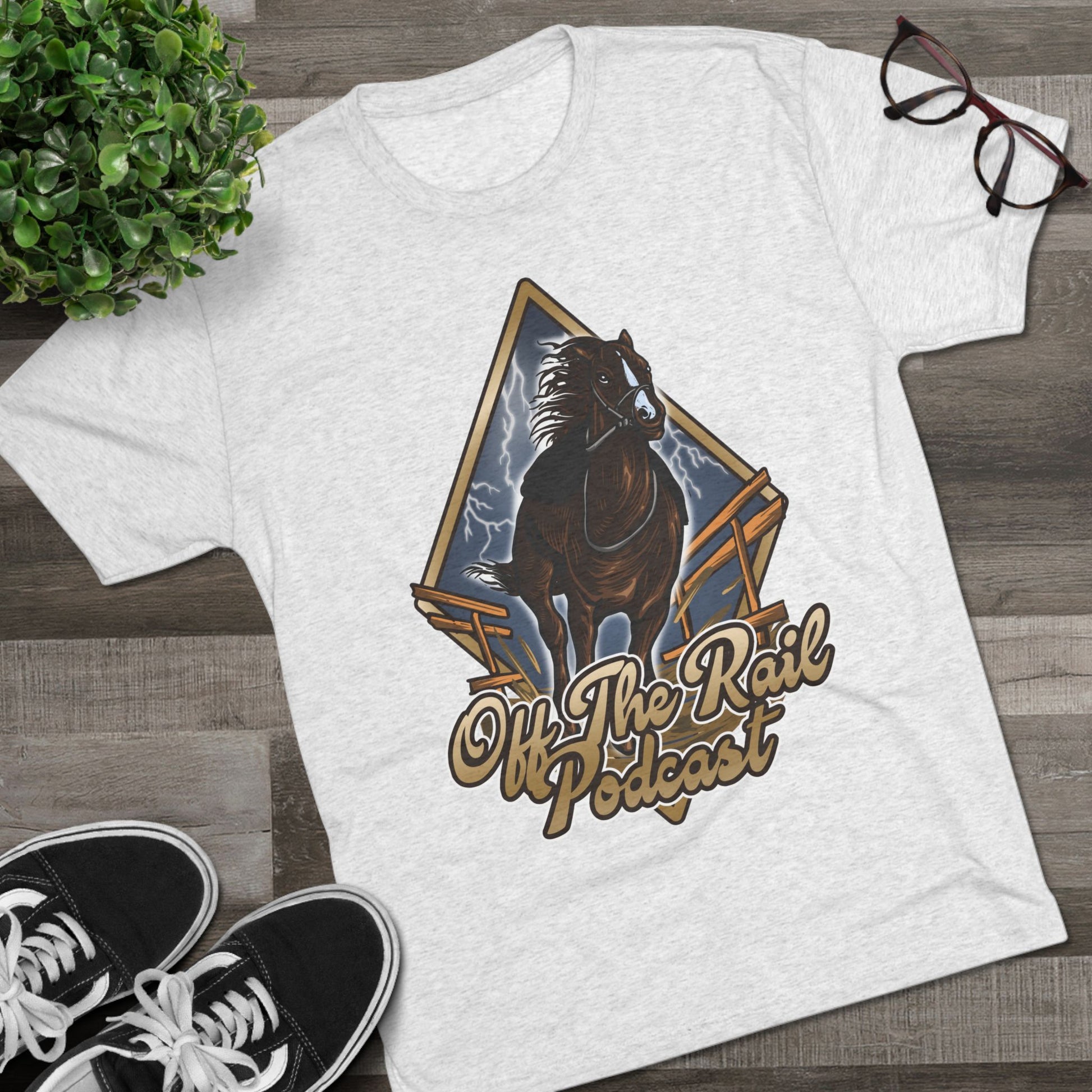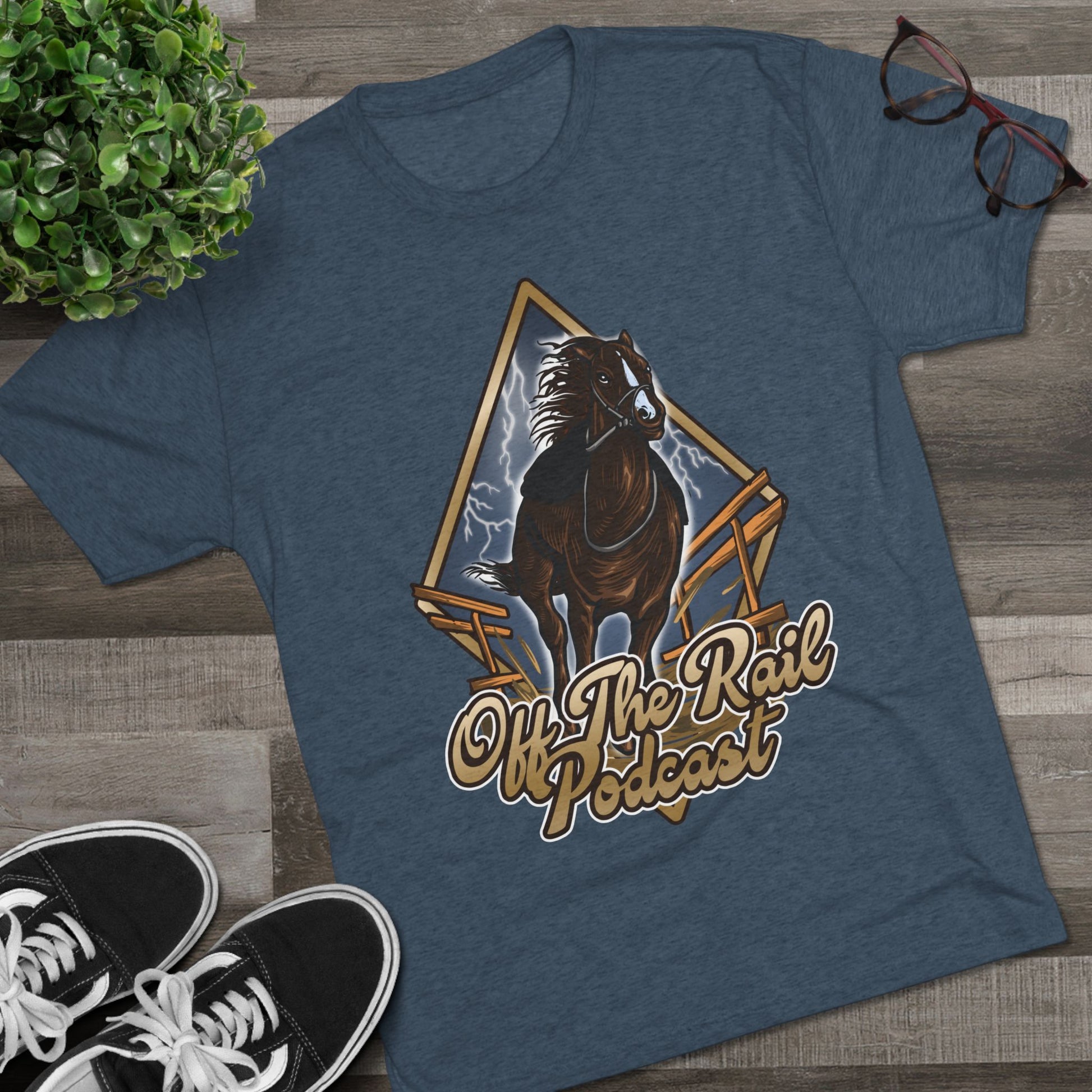 Off The Rail Podcast Unisex Tri-Blend Tee, Horse Racing, Podcast Merchandise, Equine Apparel, Stylish Crew Neck Shirt